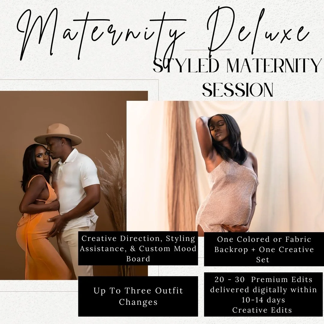 Celebrate Your Pregnancy with mesmerizing portraits. This deluxe hour-long session is complete with a fully customized set and your choice of props. We work closely with you to craft dreamy and sophisticated sets tailored to your vision.